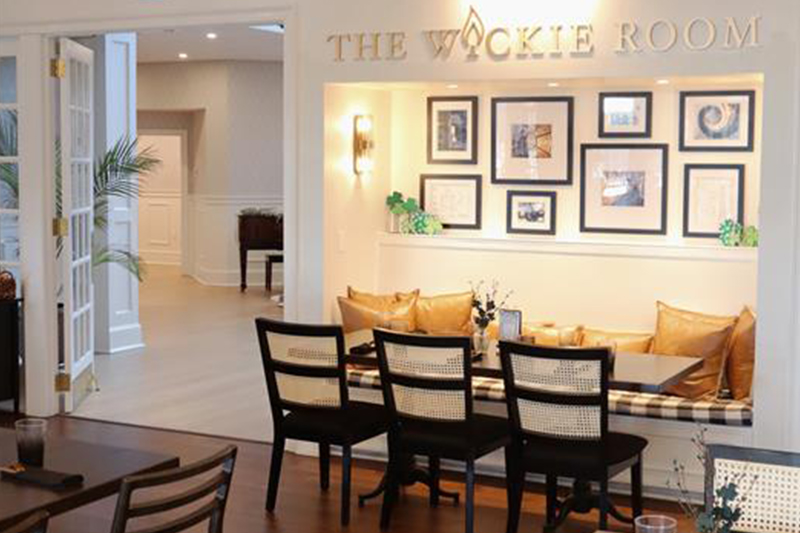 Set against the lush backdrop of our championship golf course, The Wickie Room features indoor and outdoor seating with views of the fairways and surrounding landscape. Inside, you’ll find a warm and inviting space that blends natural textures, coastal elements, and thoughtful design—perfect for everything from casual meals to private intimate celebrations.
